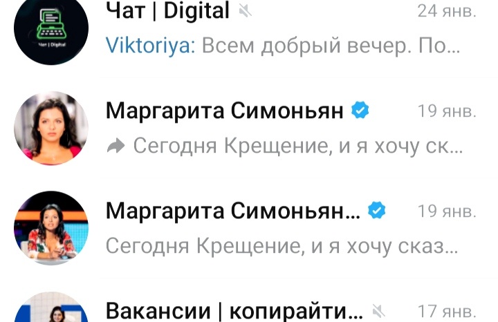 Я вижу два одиноких канала Маргариты Симоньян. Одиноких… другого слова и не подобрать. Последнее сообщение в нём 19 января на Крещение. А до этого 9 января. Через день после того, как её муж, режиссёр Тигран Кеосаян впал в кому… и… тишина.