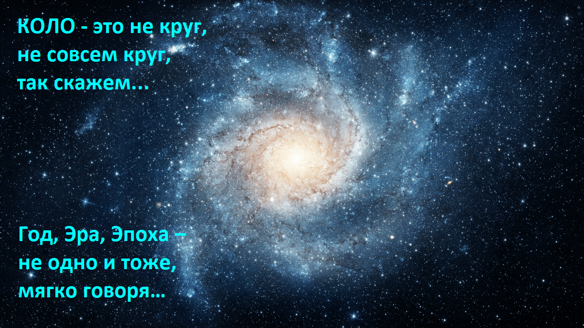 Вот и подобрались к Великому Коло – Космическому. Тут могу лишь поделиться тем, что услышала от многочисленных гуру, наставников, жрецов, учителей и т.п. – попадались сведения о 750 млн Земных (Малых) коло (как полупериоде, то есть Великое Коло 1,5 млрд. Земных годов).