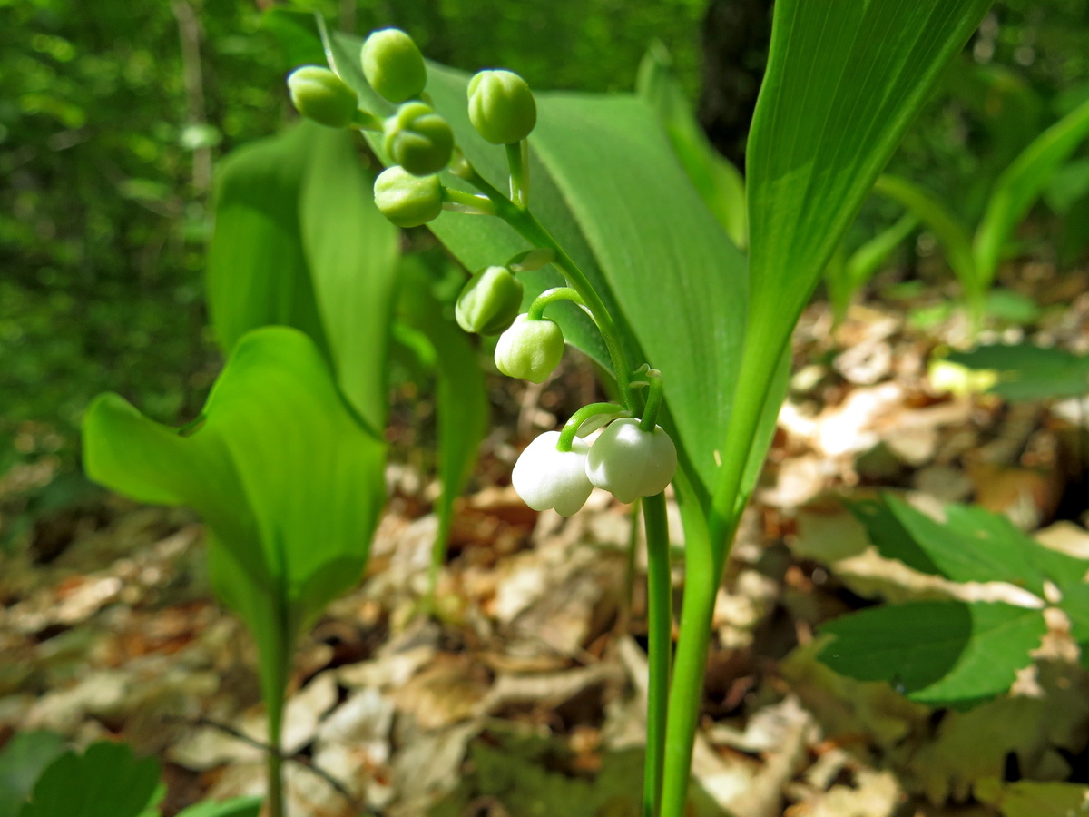 А это что? Это же первые мои ландыши того года! Я совсем не ожидала, что они здесь растут! Целые поляны! Еще только-только начинали появляться цветочки. Далеко мы решили не заходить. Дошли до любимого места у очередного водопадика и остановились. Это место еще сказочнее всех остальных! Здесь россыпи каменных глыб, покрытых мхом, и заросших вечнозеленым плющем. Над головой, в небе, смыкаются ветви огромные деревья. Лишь изредка солнечный луч осветит какую-нибудь случайную ветку. И тис! Сказочный тис, раскидывает свои мохнатые ветви над рекой и камнями. У меня всегда здесь перехватывает дыхание. Если живут в лесу сказочные существа, то они живут именно в этом месте! То, что здесь есть лесовичок, это точно! В первое наше посещение этого места он у нас взял крышечку от термоса. И это честно-честно! Немного отдохнув, мы повернули обратно. И снова у тропы нам кланялись нераскрывшимися бутонами ландыши. Поздоровался первый лесной пион! Сквозь ветви проглядывали скальные «перья» Хапхал