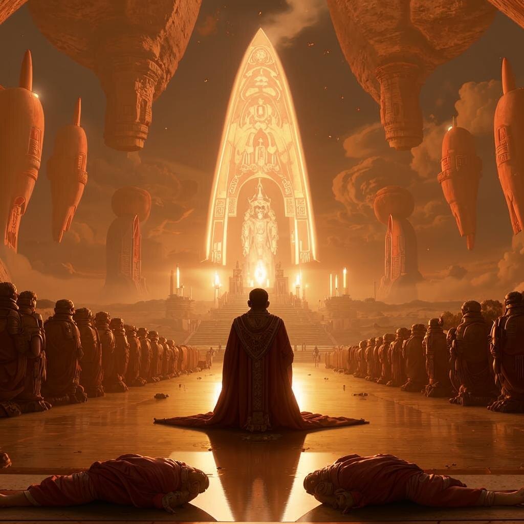 Старший из медиков достал один из своих планшетов и, потратив на подключение к внешним визорам пять минут, поманил всех посмотреть на то, что происходит с марсианами. Они все стояли на коленях и кланялись крупному марсианину так старательно, что у многих марсиан лбы уже были разбиты, и из них уже сочилась синеватая кровь.