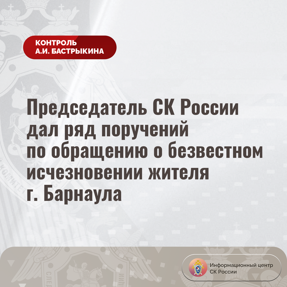 Председатель СК России дал ряд поручений по обращению о безвестном исчезновении жителя г. Барнаула