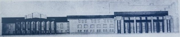 П-образное здание, занимающее целый портал. Видно, как сочетаются функциональные блоки. Решение предлагалось в духе дореволюционных народных домов. Отметим, что спустя несколько лет архитекторы вернутся в Иваново – по их новому проекту построят здание гостиницы «Центральная» (пересечение пр. Шереметевского и ул. 10 Августа).