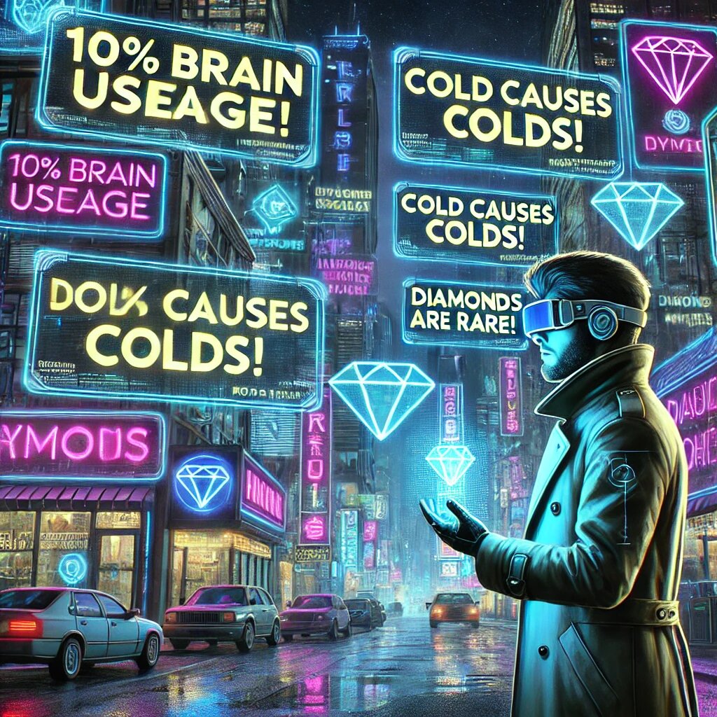 Как нас обманывают маркетологи и старые школьные учебники Мир вокруг нас — это не только наука, технологии и прогресс, но и тонна заблуждений, которые почему-то продолжают жить в головах людей. Часть из них — наследие устаревших учебников, а другая часть — результат хитрых манипуляций маркетологов. Готов разоблачить парочку мифов? Пристегнись, сейчас будет разрушение иллюзий! 🔥 Да-да, спасибо, Голливуд, теперь каждый второй считает, что если мы «разблокируем» мозг на 100%, то станем супергероями. 🦸♂️ Но на самом деле… 📌 Факт: