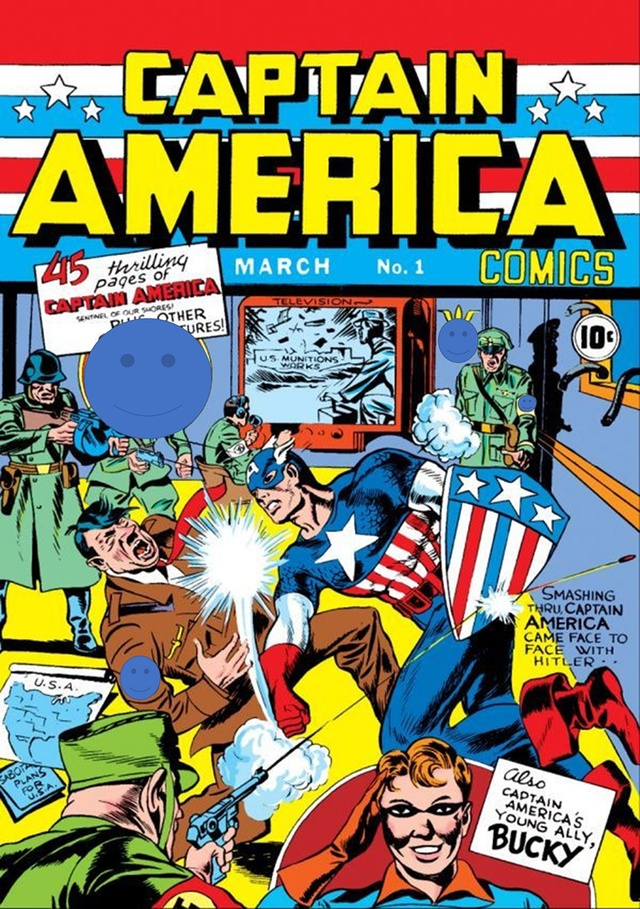 Капитан Америка стал символом борьбы не с нацизмом, а со страхом перед ним и распрями в американском обществе накануне Второй мировой. Созданный в 1940 году, он опередил даже официальное вступление США в войну. Речь Рузвельта о необходимости участия лишь подогрела его популярность. Несмотря на сходство с «Щитом», Кэп победил за счёт актуальности, патриотизма и динамичной графики Кирби. Джек, тогда ещё молодой художник, развивал талант вопреки канонам рисования комиксов. Первый выпуск (особенно с фан-клубом и значком) мгновенно стал культовым.
