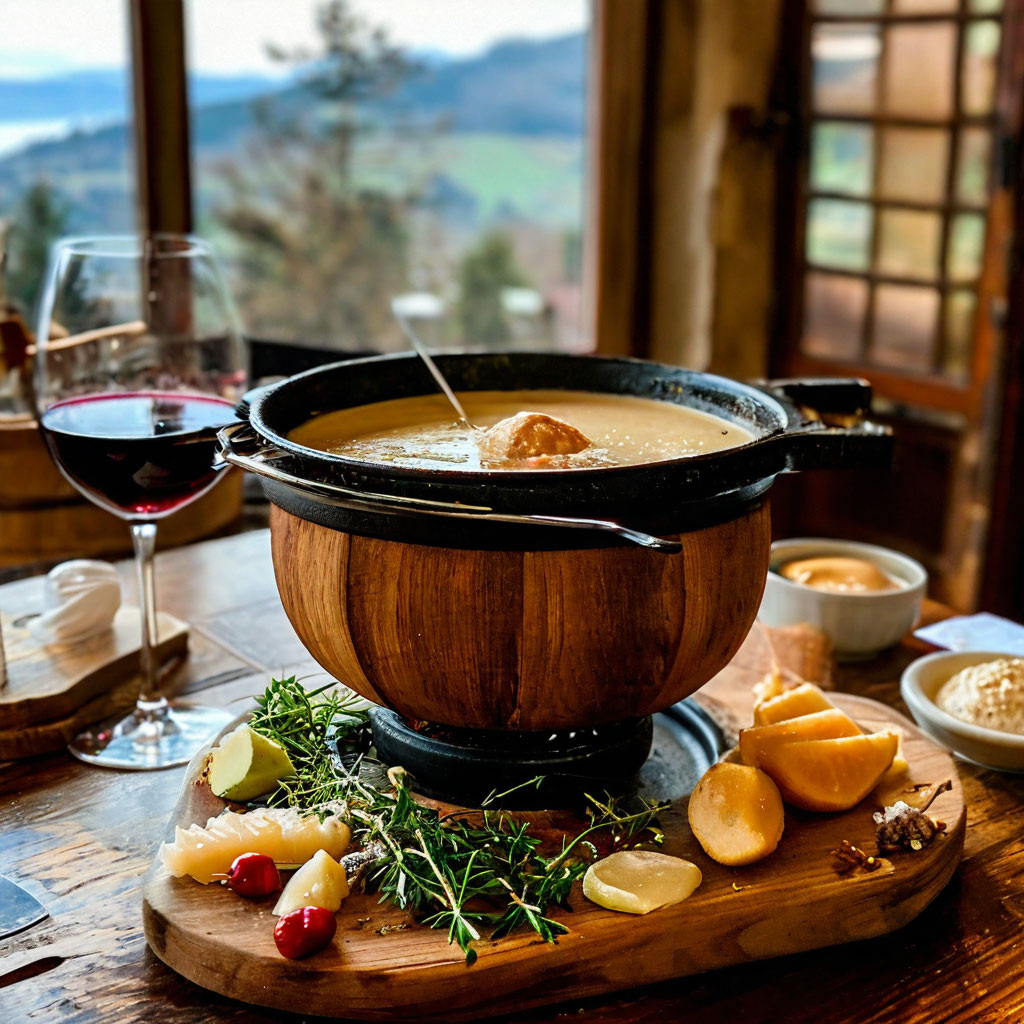 Несколько слов о вине Невшатель. Это – винодельческий регион Швейцарии, который расположен на берегу одноименного озера и отделен от Франции горным массивом. Большинство виноградников региона расположены на известняках, 75% площади занимает виноград Шасла. Постепенно повышается интерес к таким сортам, как Пино серый, Шардоне, Мюллер,Тургаю. Единственный красный сорт – Пино черный, из которого также производят неплохое розовое вино Ой-де-Педри. Исключительные отличия вина «Невшатель» из сорта Шасла: элегантная острота, легкая газированность и характерные солоноватые нотки. – 450 г сыра грюйер – 220—230 г швейцарского (эмментальского) сыра – 375 мл сухого белого вина (лучше «Невшатель») – 11/2 ст. ложки кирша (вишневого бренди) – 1/2 зубчика чеснока – 1 ч. ложка лимонного сока – 4 ч. ложки крахмала – 1 щепотка молотого мускатного ореха – перец – по вкусу 1. Горшок для фондю смазать изнутри чесноком. 2. Сыры натереть на крупной терке и смешать их в горшке. Добавить вино, лимонный сок, кра