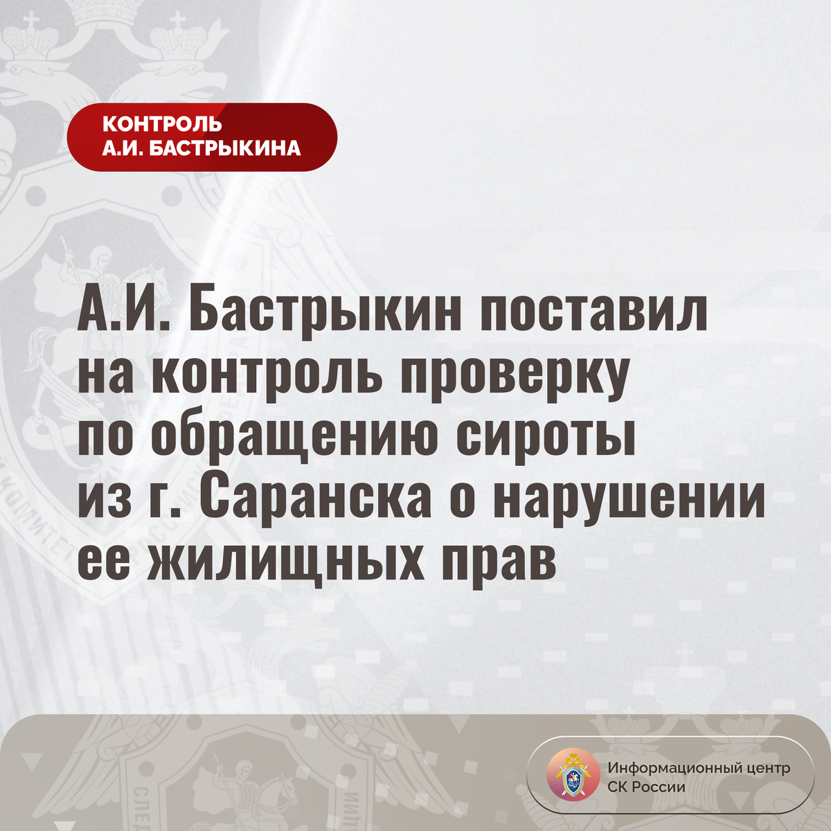 А.И. Бастрыкин поставил на контроль проверку по обращению сироты из г. Саранска о нарушении ее жилищных прав