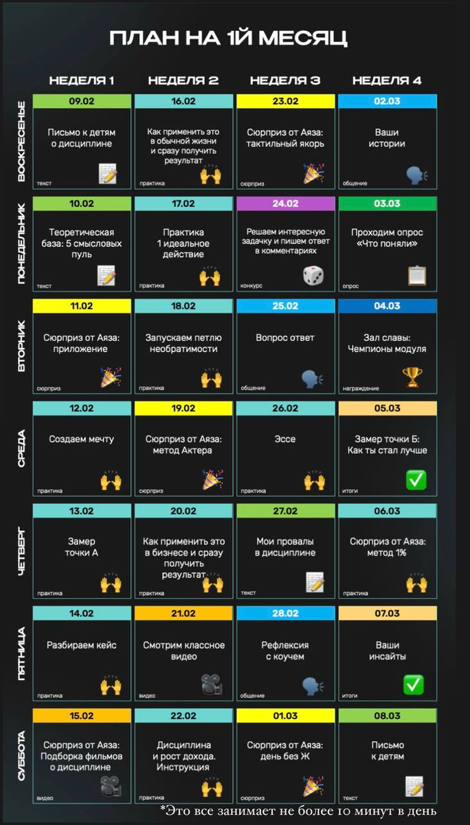 План работ на первый месяц. Что-то из этого я знаю по другим программам, многое читал, а что-то очень интересно получить посмотреть, изучить и начать внедрять.