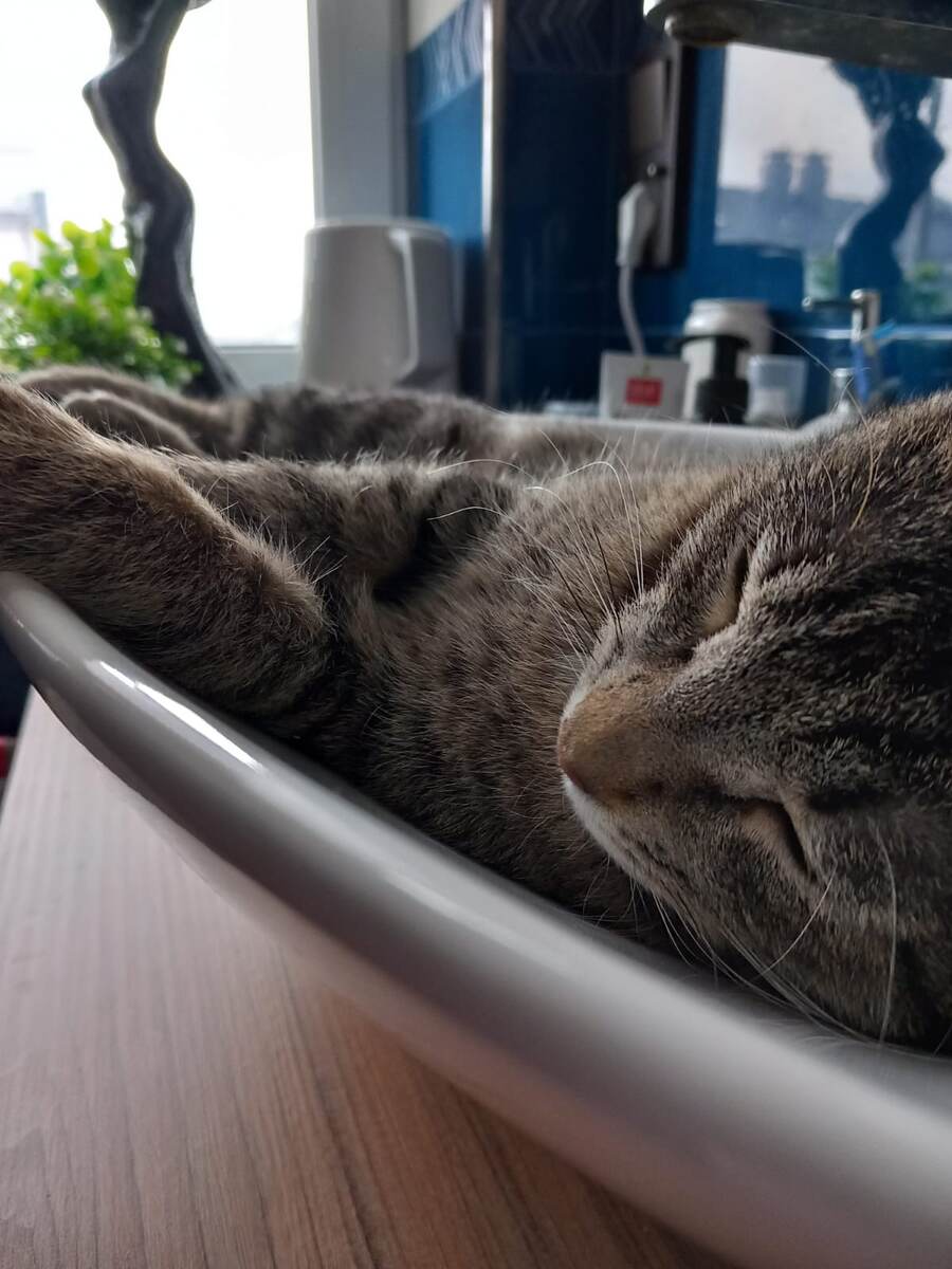 Наша троица - Марс, Венера и Плутон - неразлучны. Носятся как угорелые. Притом, к стыду кавалеров, девушку, как даму, они не воспринимают вообще. Спасибо ветеринарам - операция была сделана качественно)) Хотя время от времени у очень активного Плутона всё-таки взыгрывает внутри какое-то непонятное ему самому томление, и он издаёт очень живописные звуки. Но это так - мимолётом и вскользь. А вообще, они совершенно привыкли к Венере - и она к ним тоже. Никакой агрессии ни с одной, ни с другой стороны нет и в помине. Да у нас вообще котики не агрессивные и очень ручные - тискай, не хочу, всё воспринимают как должное и никогда никаких когтей, лапки всегда мягкие, как бы их ни тискали и не зацеловывали... На днях произошёл забавный случай. Эта троица под вечер, набесившись вволю, расползлась по уголкам на заслуженный отдых. Притихли, кто где... Пошла я перед сном почистить зубы, глядь, а передо мной умилительная картина - девушка Венера охлаждается после активных скачек, развалившись в ра