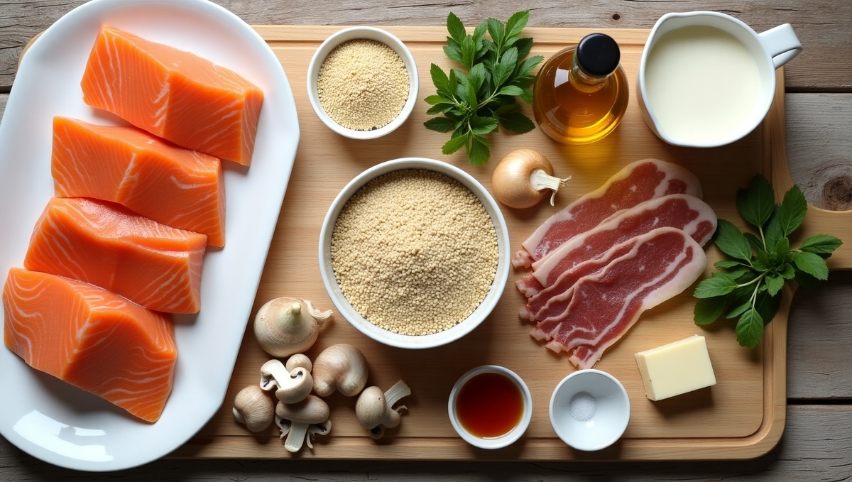 Стейки из лосося с гречотто – это необычное сочетание русской и итальянской кулинарных традиций. Нежный, сочный лосось и ароматная гречка, приготовленная по принципу ризотто, создают гармоничное блюдо, которое не только удивляет вкусом, но и приносит пользу организму. Гречотто обладает приятной кремовой текстурой благодаря сливкам и сыру, а копчёная грудинка и грибы придают блюду насыщенный аромат. Для приготовления стейков из лосося с гречотто вам понадобятся: Перед началом приготовления необходимо подготовить все компоненты: Использование гречки вместо риса делает блюдо более полезным. Гречка богата белком, железом и антиоксидантами, что укрепляет иммунитет и повышает уровень энергии. Копчёная грудинка придаёт гречотто приятную дымность, а сливки и сыр обеспечивают нежную текстуру. Лосось – отличный источник жирных кислот Омега-3, необходимых для здоровья сердца и мозга. Стейки из лосося с гречотто – это сытное и сбалансированное блюдо, которое порадует не только гурманов, но и тех,