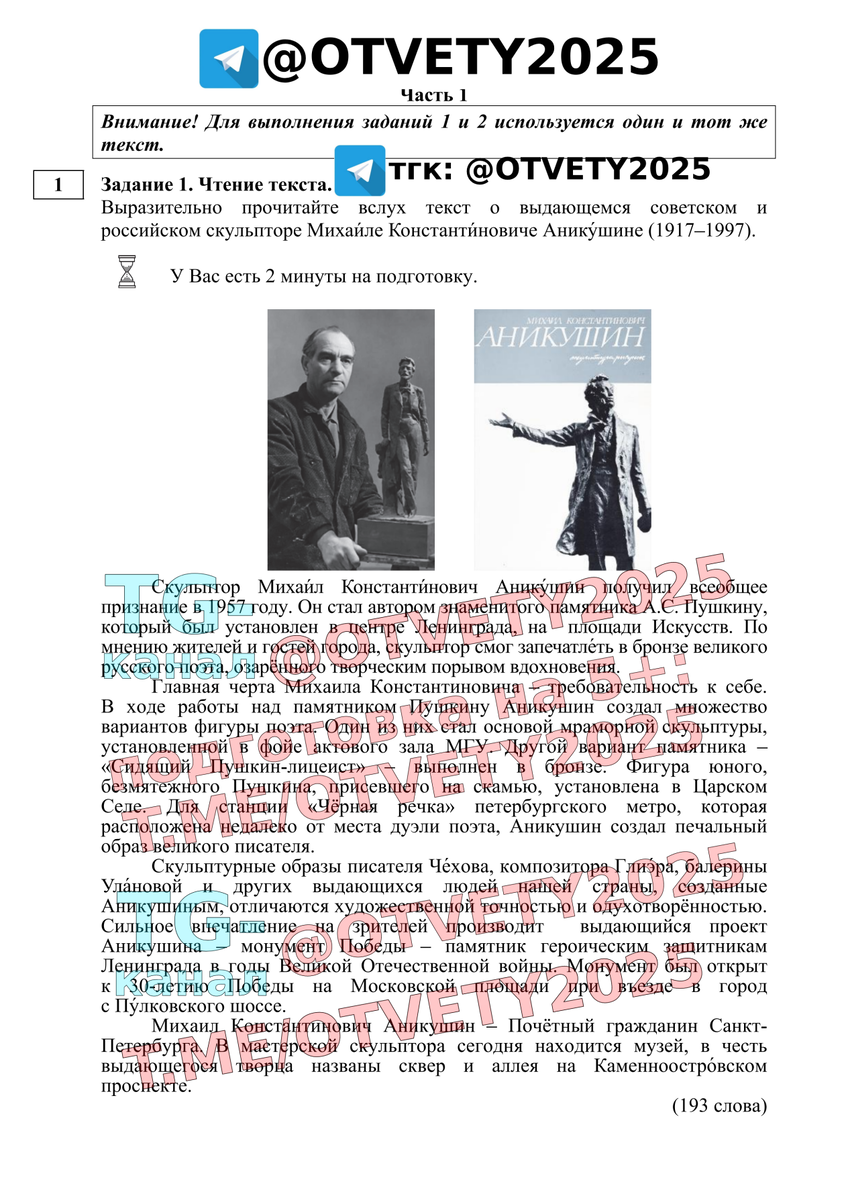 Выразительно прочитайте вслух текст о выдающемся советском и российском скульпторе Михаиле Константиновиче Аникушине (1917-1997).