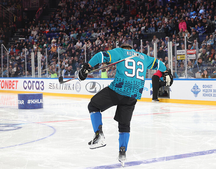 Номер Тимура Хафизова. Большинство зрителей точно смотрят мастер-шоу любого Матча звезд из-за конкурса буллитов. И хоккейная эстетика тут уже давно не на первом плане– куда больше интригует, какие шутки придумают игроки, какими костюмами или реквизитом удивят. Одним из самых необычных буллитов в Новосибирске стала попытка Тимура Хафизова из «Сочи». Нападающий вышел в джерси своего хоккейного клуба, только с фамилией и номером Евгения Кузнецова, который не приехал на Матч звезд из-за сотрясения. Хафизов набрал скорость, раскатившись из-за ворот, а затем резко остановился перед шайбой и начал двигаться максимально медленно, отсылая к фирменному стилю Кузнецова. Такая скорость не снилась даже Евгению: по пути к воротам Тимур выпил воды и поболтал с Богданом Конюшковым. В итоге Иван Бочаров устал ждать форварда и тоже решил попить воды, на чем его и поймал Хафизов. Видео из группы «Хоккей на Кинопоиске» во ВКонтакте У этой идеи есть предыстория. В сентябрьском матче со СКА (4:7) Хафизов за
