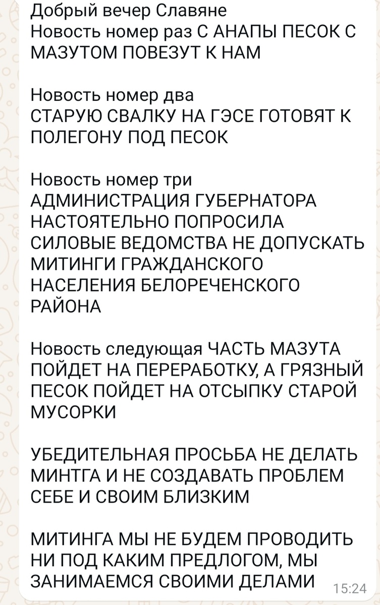 - Эту "новую свалку" видно даже с трассы "Усть-Лабинск" - Майкоп. Гора возвышается метров на 35-40, а тракторишки, по ней ползающие кажутся букашками на огромной навозной куче. Вонь тоже с трассы ощущается невыносимая, особенно при северо-восточном ветре. И эту вонь несёт на город. А на северной окраине в Северном микрорайоне находится большой современный детский садик. Чтобы травить, так уж с малолетства.