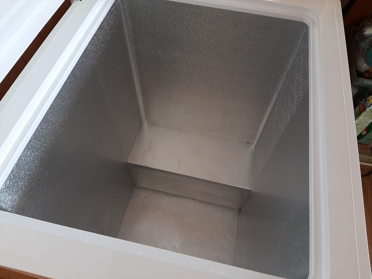 Открываем ларь - льда нет. Лишнюю воду убрали, протерли насухо, дали немного постоять в открытом виде и заполнили ларь продуктами.