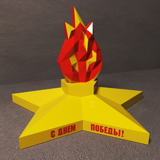 Чтобы создать красивый и оригинальный вечный огонь из бумаги, нам понадобится бесплатный шаблон для паперкрафта. Паперкрафт — это техника сборки объёмных фигур из бумаги по заранее подготовленным шаблонам. Не переживайте, я подробно расскажу и покажу, где найти такой шаблон и как сделать вечный огонь своими руками. Забегая вперед, сразу покажу готовый результат. Перед вами модель вечного огня, выполненная в технике паперкрафт. Она состоит из жёлтой пятиконечной звезды, символизирующей воинскую славу, и яркого объёмного пламени в центре, выполненного из красно-оранжевых и жёлтых граней. На звезде размещена надпись "С ДНЕМ ПОБЕДЫ!", подчёркивающая её связь с праздником Великой Победы. Такая модель станет ярким символом памяти и уважения к героям, а также прекрасным украшением к 9 Мая. Как сделать такую модель самому ? Все очень просто, скачиваем бесплатную модель в интернете, например на skrapbukings.ru - на сайте просто наберите "вечный огонь" в поиске. В архиве будет сам шаблон и