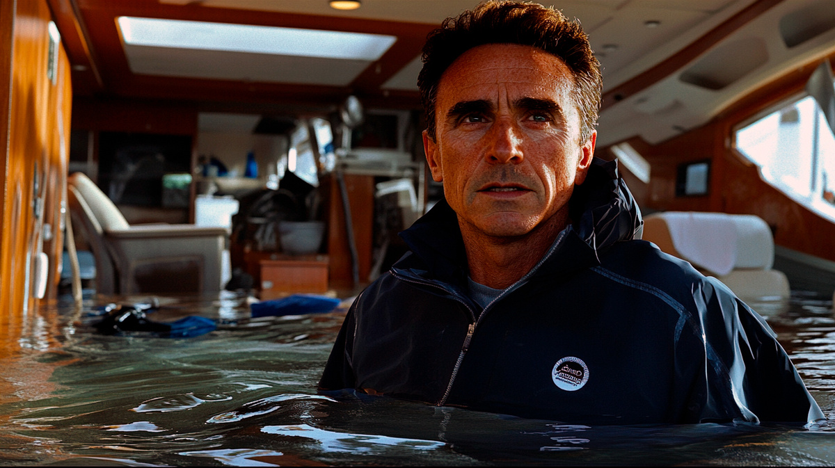Только 15 секунд. Именно столько времени, чтобы успеть забраться внутрь, прежде чем яхта перевернётся. Жизнь зависит от скорости. Кампруби бросается в каюту, но волны уже хлещут внутрь. Он пытается закрыть дверь, но не успевает — яхта опрокидывается вверх килем.