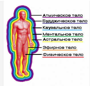 У человека кроме физического тела есть ещё и целых 6 энергетических, составляющих энергетическое "тело" или ауру. Человек состоит из семи тел.