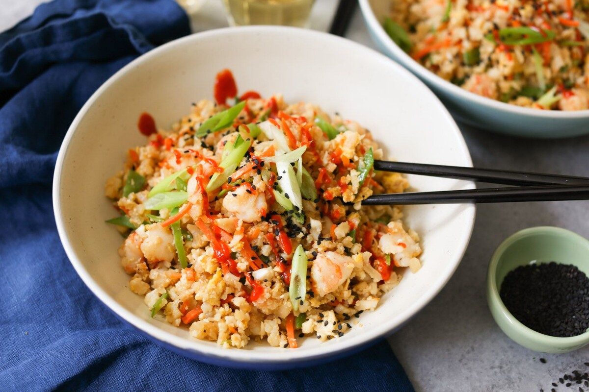 “Цветная капуста “Рис” с креветками (Cauliflower Rice with Shrimp): Низкоуглеводное, полезное и вкусное блюдо, которое легко приготовить!”