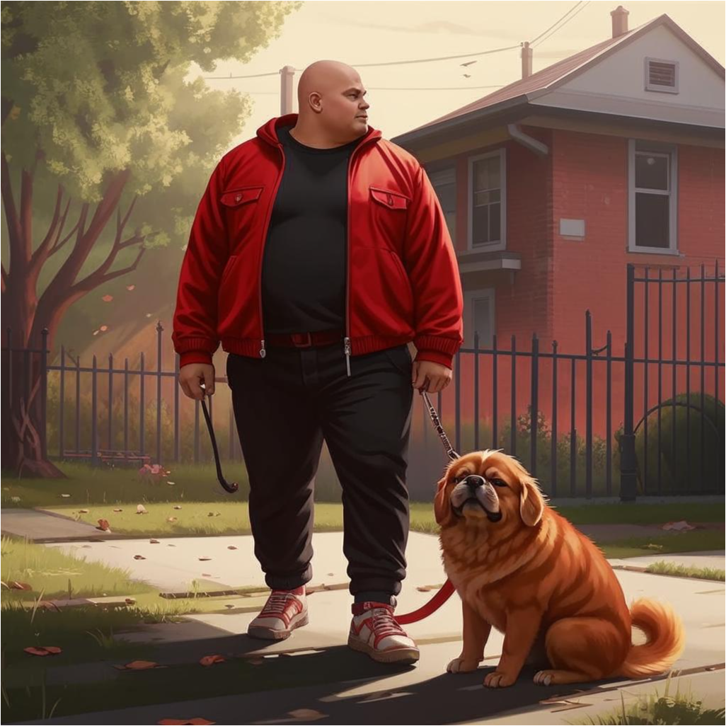 Он махнул рукой на маленького толстенького, почти лысого мужичка, удерживающего на поводке коротконогую рыжую собакенцию с приплюснутым носом.