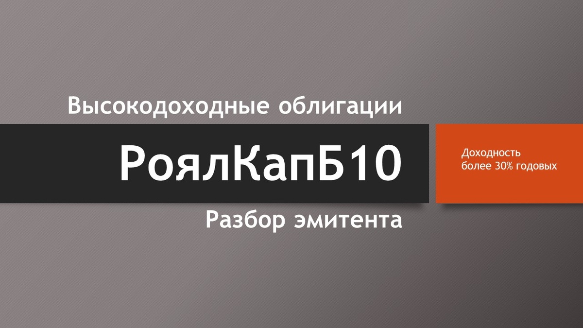ООО "Роял Капитал" это лизинговая компания, которая так же занимается параллельным импортом автомобилей. Подробнее, можно посмотреть у них на сайте, хотя, он не особо информативен. На Мосбирже есть пять выпусков облигаций этой компании, со сроком погашения в 2025-2027 году, общей суммой более чем на 550 млн. руб. Коды выпусков: RU000A1079H9, RU000A1056Q8, RU000A106JC8, RU000A104UF3, RU000A10A6V6.