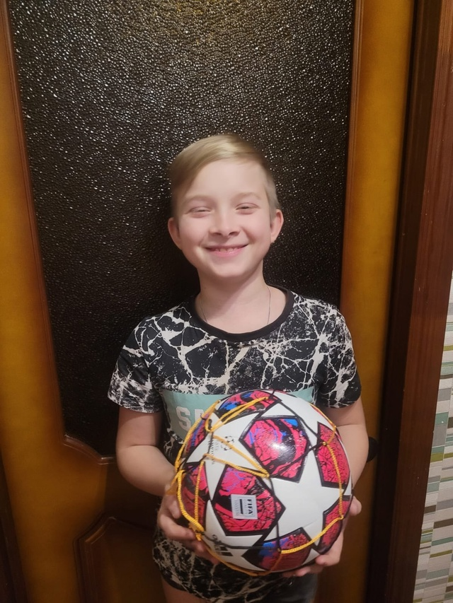 Нашему новому подопечному, Булатову Артёму, подарили настоящий профессиональный футбольный мяч!