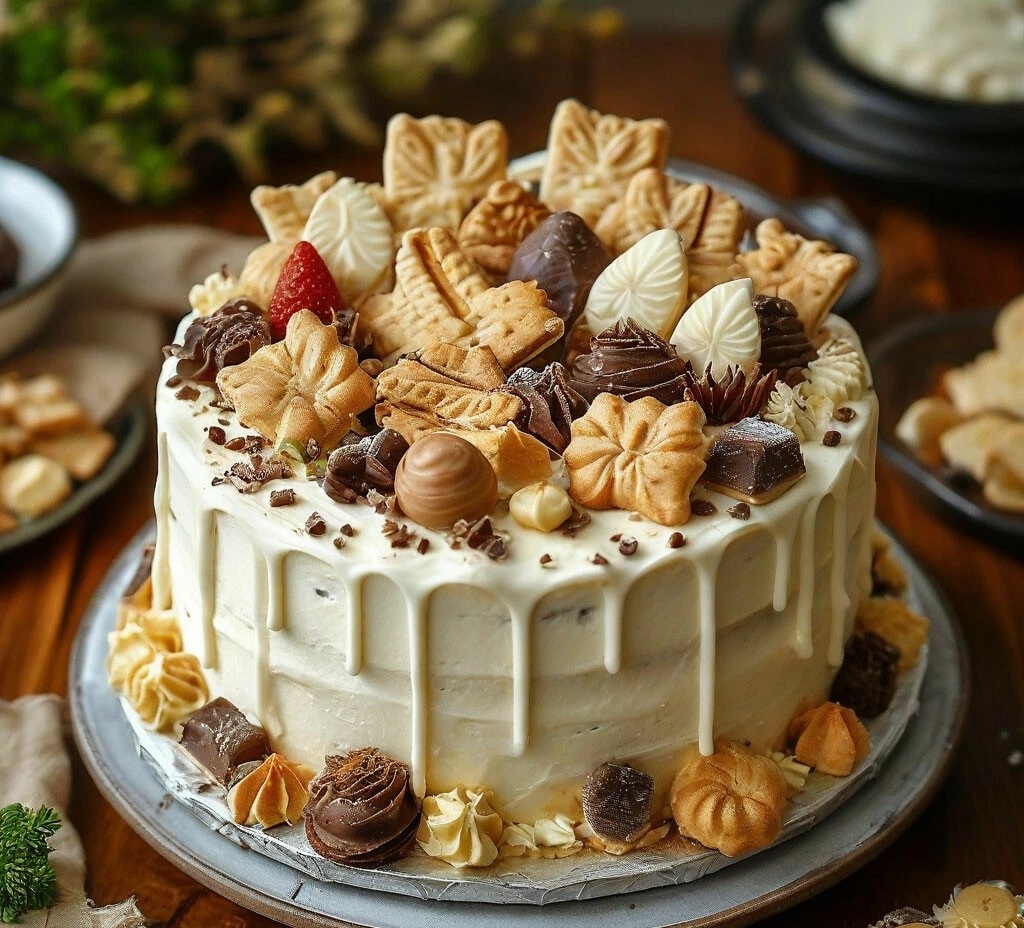 Песочное тесто: 300г пшеничной муки, 200г маргарина, 100г сахара, яйцо, ванилин. Маргарин взбить с сахаром, добавить яйцо, ванилин, просеянную муку и поместить в холодильник на 30 минут. Творожная масса: 300г сухого творога, 200г ревеня, 2 яйца, 70г сахара, 20г манной крупы, 20г пшеничной муки, полстакана измельчённой апельсиновой корки, сваренной в сахарном сиропе, ванилин. Яйца взбить с сахаром, добавить пропущенные через мясорубку творог. В массу замешать манную крупу, очищенный, нарезанный маленькими кубиками ревень, ванилин, апельсиновую корку. Бисквитное тесто: 3 яйца, 60г сахара, 60г пшеничной муки, ванилин. Крем: 500г ревеня, 500г сливок 35%, 100г сахара, 15г желатина, 2 столовые ложки клюквенного сока.