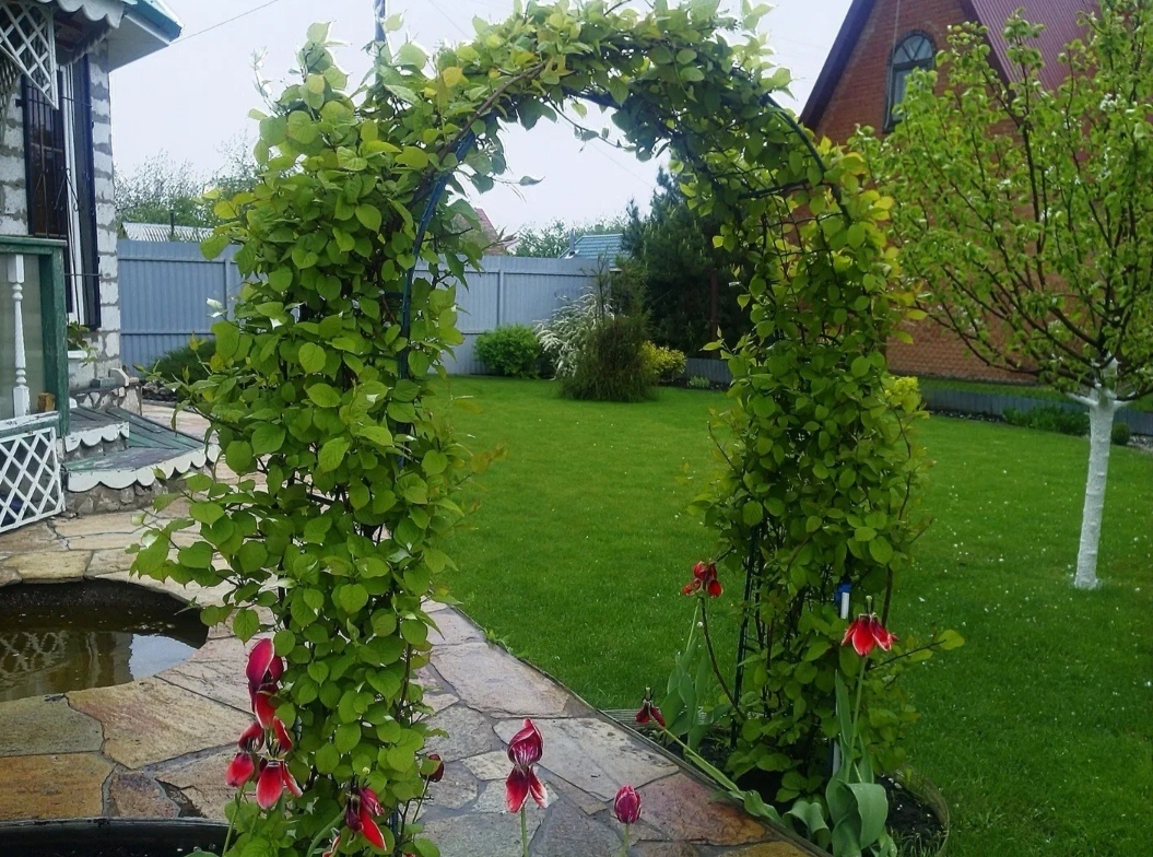 Весной лимонник китайский украшает участок нежными белыми или розовыми цветами, летом укрывает от солнца зеленой листвой, а осенью добавляет краски в пейзаж красными плодами.