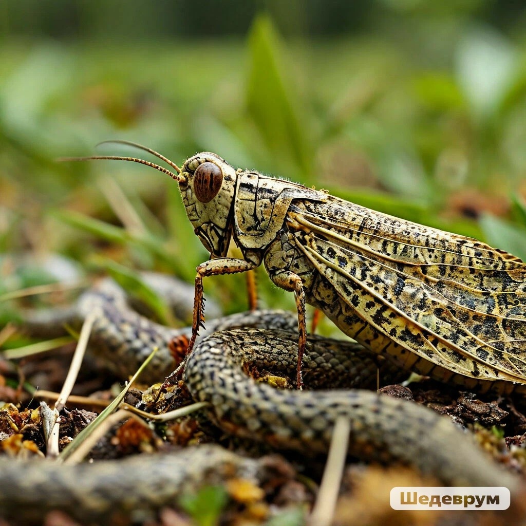 Вот так Шедеврум нарисовал вышеперечисленных вредителей , только почему-то объединил саранчу с луговым мотыльком и она получилась с мотыльковыми крыльями: