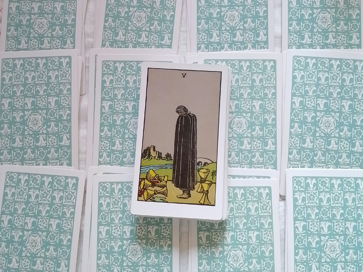 На дне колоды - 5 кубков. Эта карта больше относится к внутренним переживаниям - здесь можно предположить фрустрацию, вызванную неоправдавшимися ожиданиями.