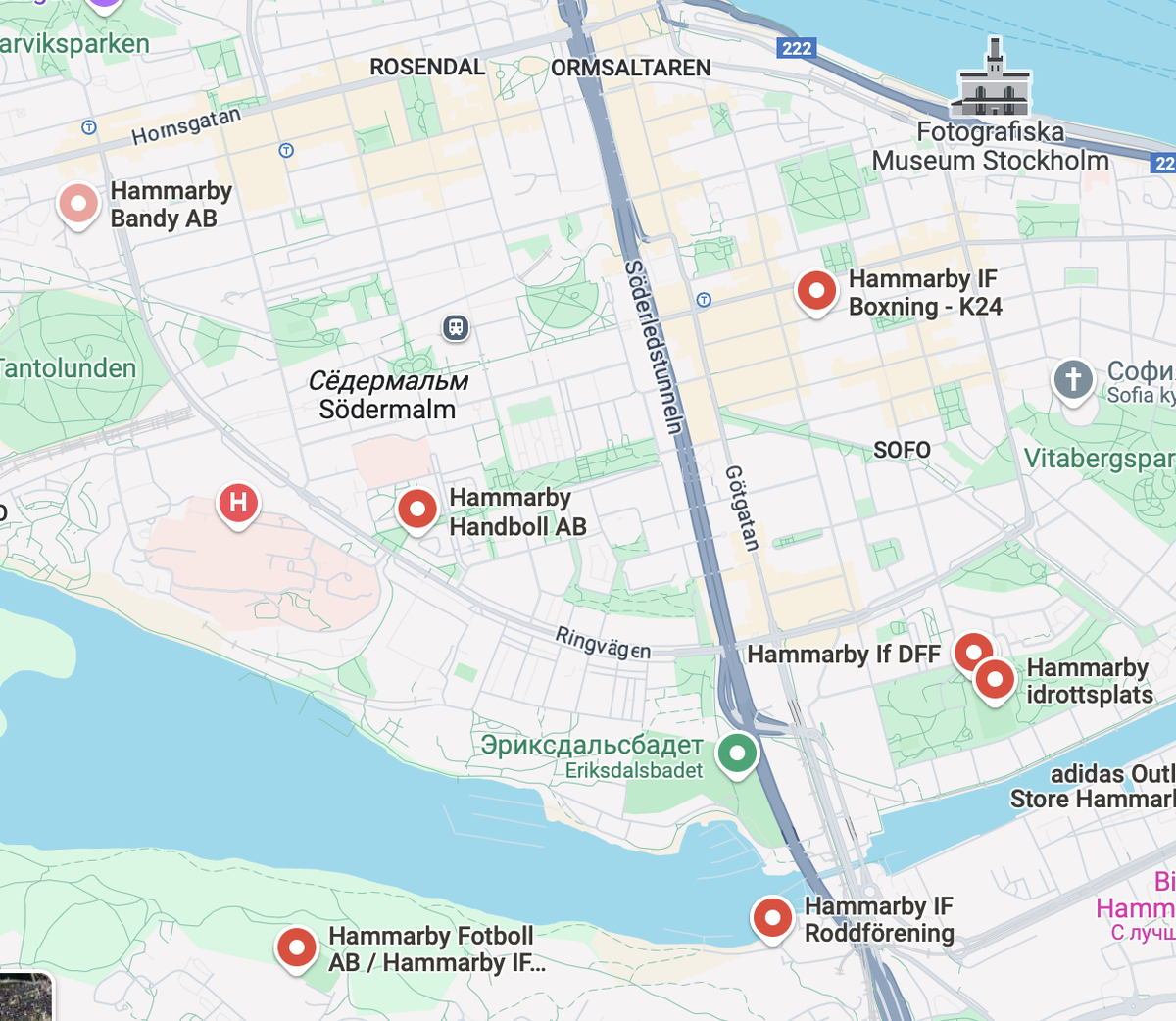Хаммарбю - клуб большой, и присутствует не только в хоккее с мячом. На наши деньги это что-то вроде "Спартака", который тоже присутствует почти во всех видах спорта. Клуб имеет свою географическую привязку в пределах Стокгольма - район Сёдермальм на юге города и традиционно считается клубом для рабочего класса. Все команды базируются не очень далеко друг от друга: