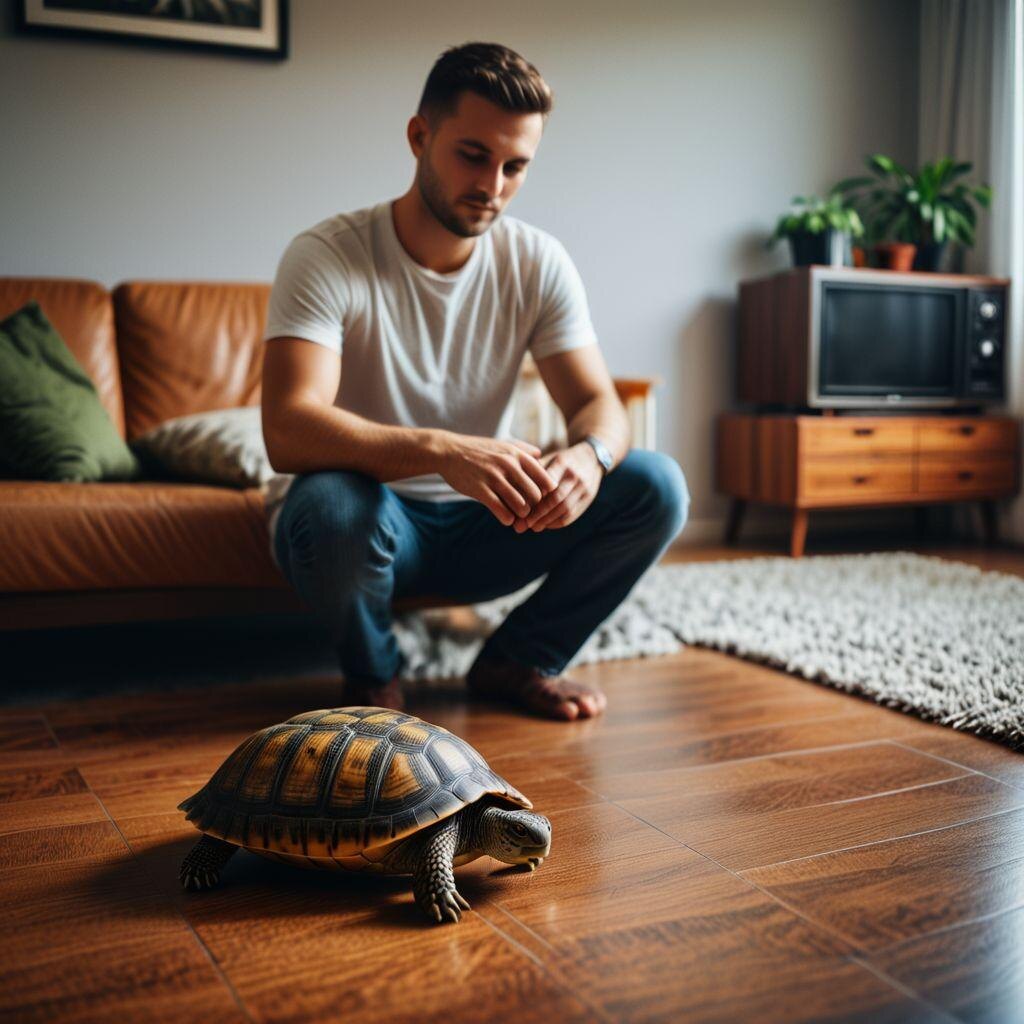 стыл прямо на пороге: посреди комнаты на полу расположилась здоровая черепаха!