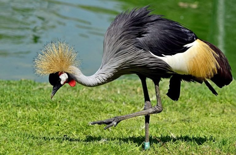 Венценосный журавль — крупная птица. На фото венценосный журавль выглядит роскошно и грациозно, а что расскажет нам описание этой птицы?