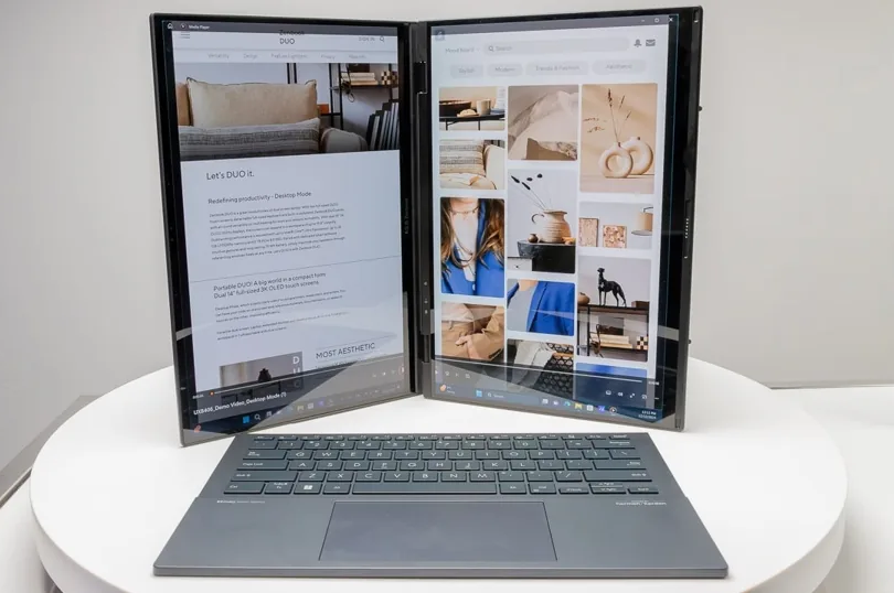 С момента выхода Zenbook DUO в 2023 году прошло достаточно времени, чтобы оценить его преимущества и недостатки. Если вас не смущает съемная клавиатура в стиле планшета, то Asus Zenbook DUO (UX8406) — это сенсационное и доступное сочетание удобства ноутбука и производительности настольного компьютера с двумя мониторами.