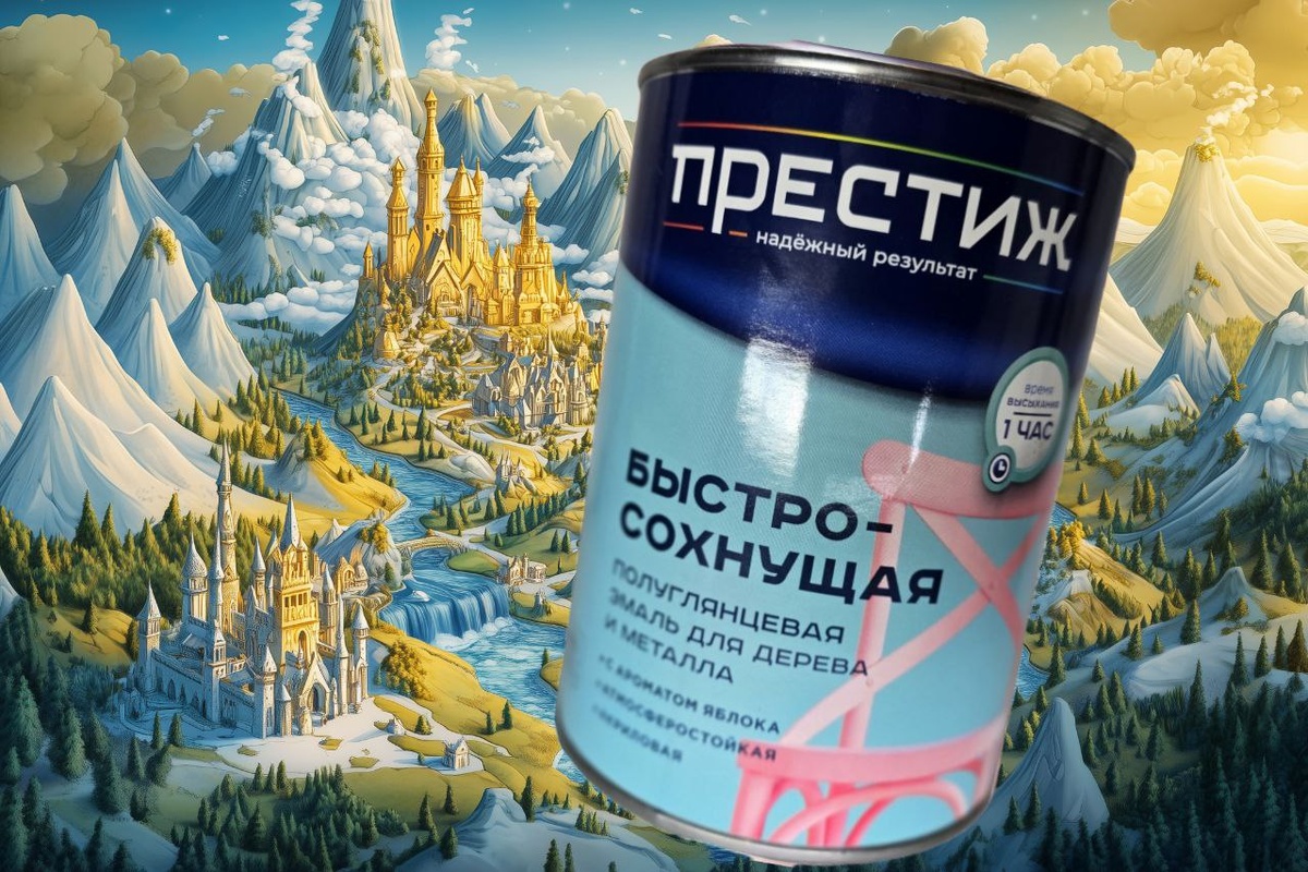 Но однажды напал на царство Ужасный Хаос — пятна клякс, потёртости времён и грязь, что не смыть даже слезами дракона. И тогда Эмаль-Хранительница сказала: «Привет, я Эмаль Престиж, и мне есть чем похвастаться! Хотите знать, как я победила Хаос? Смотрите и учитесь!» [«Я высыхаю за час — ваше время в безопасности!»] «Высохнуть за час? Легко! — хвасталась Эмаль. — Пока конкуренты сушатся сутки, я уже готова к бою!». Лайфхак: Красьте утром — к вечеру комната сияет. Она не делила мир на «внутри» и «снаружи». Мебель, стены, трубы — всё ей по плечу! Кейс: Как кузнец Иван покрасил забор, сарай и даже кота (кот остался доволен). «Я — друг детей и лекарей! — говорила Эмаль. — Никаких ядовитых испарений, только аромат яблок!». Факт: Сертификаты безопасности — её волшебные амулеты. «Один флакон = 9 м²! — кричала она, размахивая кистью. — И даже если меня заморозят пять раз — я выживу!». Лайфхак: Храните в подвале, сарае или у Кощея в сундуке — не испорчусь! «Я не желтею, не боюсь воды и не сти