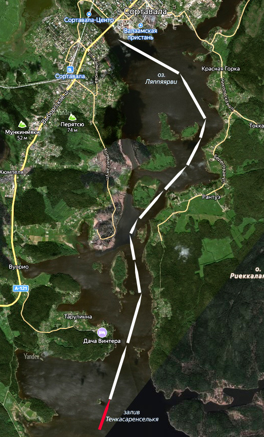Прямо по курсу – озеро Ляппяярви и Сортавала.