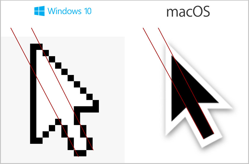 Почему курсор компьютерной мыши наклонён и несимметричный?