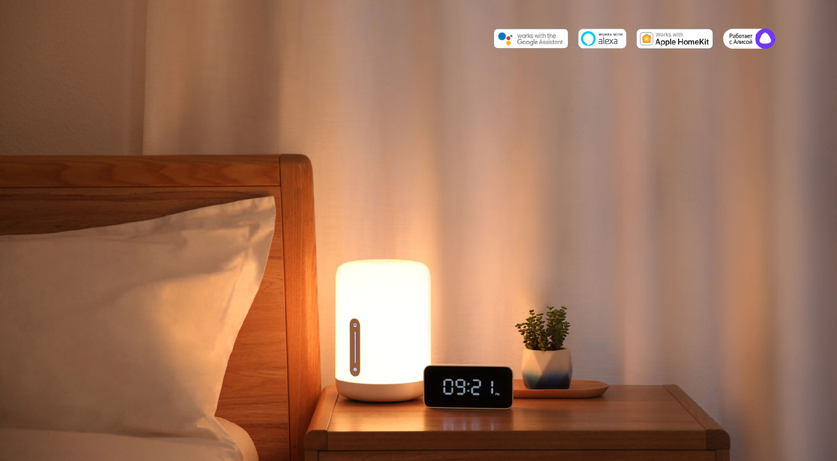 Цветовой охват: WRGB Световой поток: 400 лм Коэффициент цветопередачи: 80 Ra Номинальная потребляемая мощность: 220-240 В ~ 50/60 Гц, 0,45 А Беспроводное подключение: Wi-Fi IEEE 802.11 b/g/n 2,4 ГГц, Bluetooth 4.2 BLE Потребляемая мощность лампы: 12 В, 1 А Коэффициент мощности: 0,45 Номинальная мощность: 9 Вт (12 x 0,6 Вт/LED-модуль + 6 x 0,3 Вт/RGB LED-модуль) Рабочая температура: От -10°C до 40°C Рабочая влажность: От 0% до 85% Эксплуатационный срок службы: Прибл. 25 000 часов Операционная система: Android 4.4 или iOS 9.0 и более новые версии Умная лампа второго поколения Xiaomi Mijia Bedside Lamp 2 MJCTD02YL более равномерным распределителем света. Благодаря уникальной технологии изготовления вся поверхность ночника Mi Bedside Lamp 2 равномерно излучает мягкий свет, способствуя созданию приятной атмосферы в любом помещении. Яркость освещения легко меняется в диапазоне от 2 люменов (режим ночника) до 400 люменов (этого достаточно для полноценного освещения комнаты средних размеров).