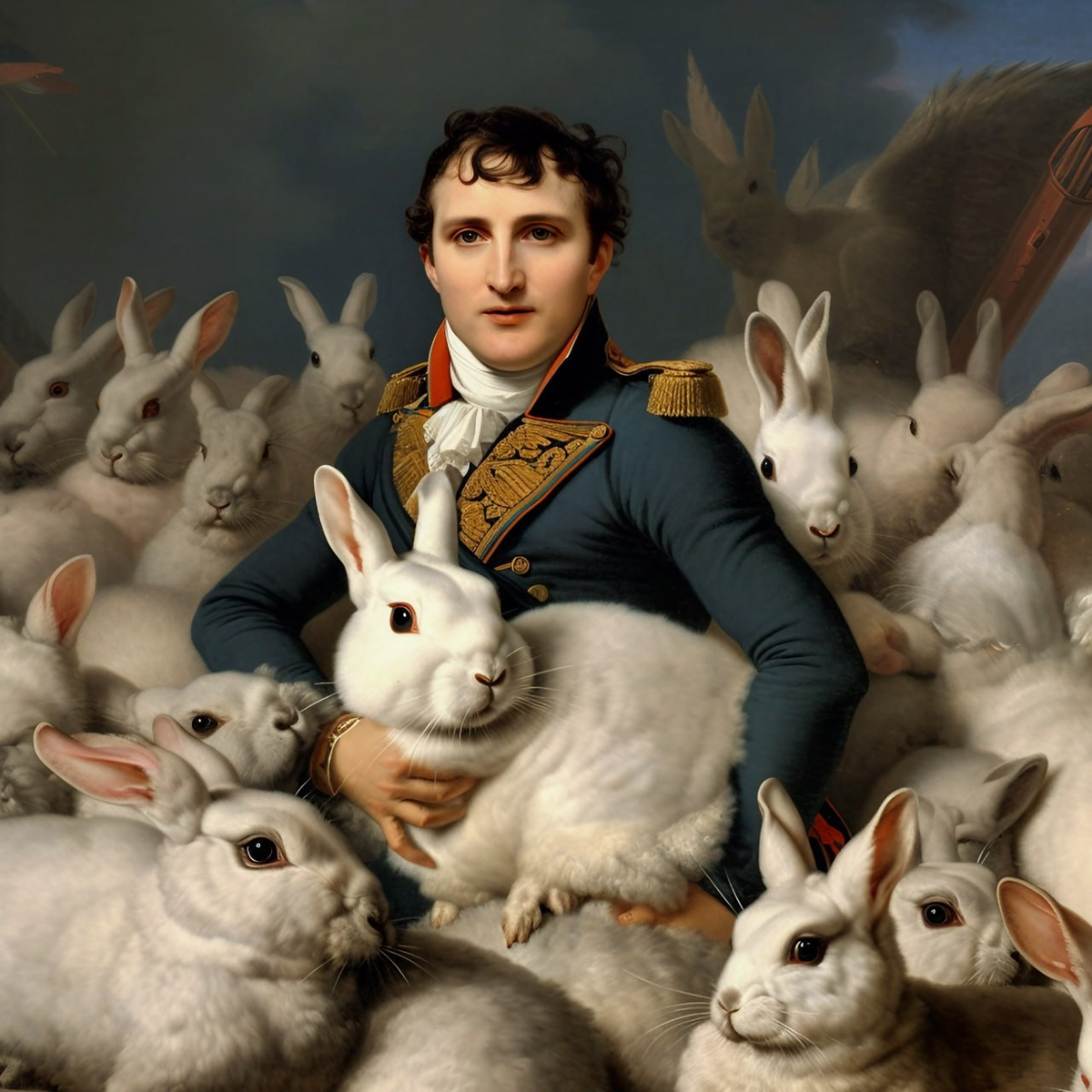 Напрасно загонщики пытались хлыстами разогнать этот живой пищащий поток мяса и направить его на другие номера, где стояли другие стрелки. Кроличья орда не желала покидать своего «любимого хозяина»… Наполеона. Последнему ничего не оставалось, как в ярости швырнуть ружье в Бертье, вернуться в карету и приказать гнать в Париж, давя колесами тучи бедных кроликов...