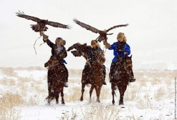 И первую притравку на лисью шкуру, которая волочилась по земле, привязанная к коню, на котором сидел сын, вспомнил Арген. Когда он сорвал колпачок с головы птицы, то беркут сразу понял, чего ждёт от него его друг и повелитель. И тогда Арген подбросил орла в воздух, а тот, набрав высоту, камнем ринулся вниз и почти в клочья изорвал могучими когтями шкуру.