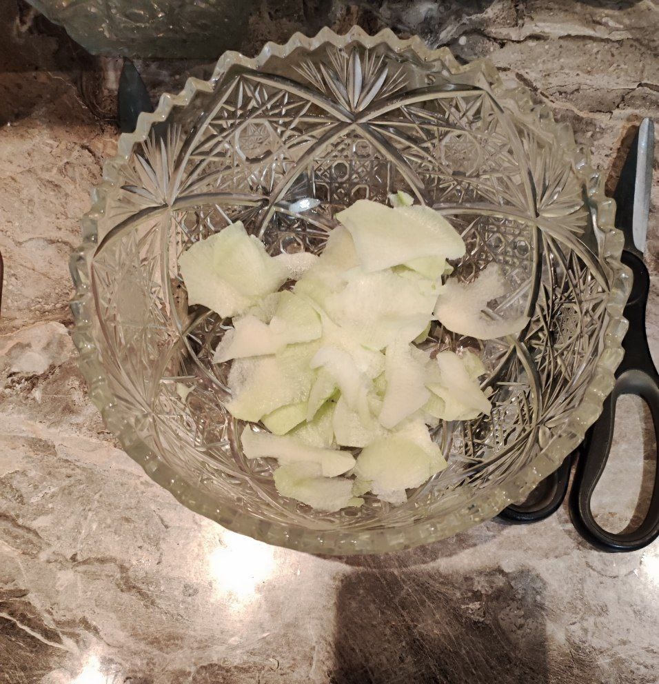 Хорош как самостоятельное блюдо, так и в роли гарнира к мясу, рыбе, купатам, пельмешкам и мантам. Вам понадобится: 1 небольшая зелёная редька 1/2 большого огурца 3 листа салата айсберг 3 столовые ложки горошка (можно с морковью) Кунжут белый, кунжут черный, семена льна по 1 чайной ложке 1/2 чайной ложки мёда 1/2 чайной ложки яблочного уксуса Немного соли по вкусу и не рафинированное масло. Редьку натирайте на тёрке пластинами Огурец нарежьте плоскими дольками Салат непременно рвите руками, так он не темнеет и остаётся хрустящим Добавьте горошек Приготовьте семена льна, кунжута белого и чёрного, добавьте в салатик. Отдельно соедините мед, яблочный уксус , растительное масло и соль. Заправьте салат. Все аккуратно перемешайте. Готово! Можно подавать! Ммм, пальчики оближешь! И всего за 5 минут. Кто будет пробовать?