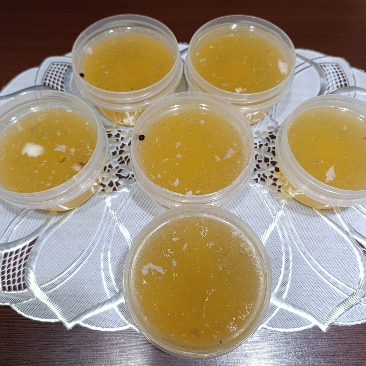 Недавно готовила рулет из курицы в желе (рецепт здесь) и осталось очень много насыщенного и ароматного бульона. Конечно же выливать его - это расточительство. :)) Поэтому подобные бульоны я всегда замораживаю. Это может быть, как в данном случае, бульон после приготовления рулета из курицы, бульоны после приготовления холодца, заливных. Данные бульоны я потом добавляю в супы, а так же при приготовлении блюд и соусов. Иногда я варю бульоны специально, например, рыбные. Иногда остается голова при разделке рыбы или хвостик. Я их складываю, а потом из нескольких варю бульоны, которые добавляю в супы для усиления вкуса. Итак, свой бульон после приготовления рулета я остужаю, разливаю в маленькие пластиковые контейнеры (посмотреть как выбрать контейнер для заморозки можно здесь). Бульоны очень насыщенные, поэтому у меня контейнеры по 250 гр и данного количества хватает потом на приготовление всего блюда или кастрюли супа. Ставлю их на 2 часа в холодильник, а на ночь в морозилку. Утром доста