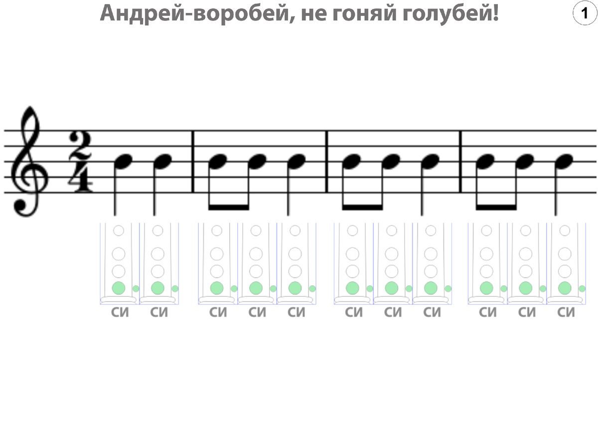 Продолжим про духовые, речь, аутизм. Подборка на тему. Вступительная статья. --- Итак. Дудим. Про Свирельку рассказала. Теперь про организацию урока. Я вообще не знала, как это будет, дудеть с Гришей. Если кто-то думает, что это типа как в музыкальной школе, ну вы молодцы))) Нет. План у меня был такой: И хватит. Как это реализовать на постоянной основе? Какие-то простые мелодии?.. Ну хорошо. Простые мелодии на Свирельке я нашла, скачала, и даже творчески обработала, чтобы не надо было никаких нот учить. Да, это к вопросу "а что, Гриша ноты знает для блокфлейты"? Нет, не знает. Я считаю, что надо смотреть правде в глаза на цель. Цель какая? Дудеть. Вот и дудите. А учить ноты, тратить на это и без того крошечный ресурс, я считаю, это не понимать основной цели - дудеть. И сильно усложнять и без того хрупкий процесс. Поэтому да, ноты с дополнительной информацией. Вот так это выглядит: Блокфлейта. Внизу это то, как надо зажать отверстия. Ноты идут от простого к сложному. И во