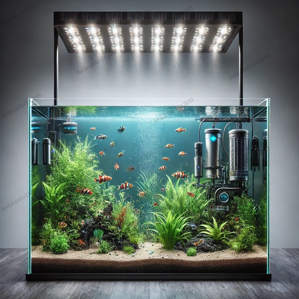 Аквариум — это не только красивый элемент интерьера, но и живая экосистема, требующая ухода. Однако не всем хочется тратить много времени на обслуживание. Можно ли сделать аквариум максимально неприхотливым? Да! В этой статье разберём, как создать самодостаточную систему, которая будет радовать глаз, но при этом требовать минимального ухода. Если хотите минимизировать уход, стоит начать с выбора подходящего аквариума. ✅ Размер: Оптимальный вариант — от 50 до 100 литров. Маленькие аквариумы требуют частых подмен воды, а большие занимают много места. ✅ Форма: Прямоугольный аквариум проще в уходе, чем круглые или высокие модели, так как в нем лучше циркулирует вода. ✅ Рыбки: Выбираем самых неприхотливых: ✅ Растения: Живые растения помогают поддерживать биобаланс. Выбираем нетребовательные виды: Чтобы тратить минимум времени на обслуживание, нужно правильно подобрать оборудование. 🔹 Фильтр: Лучше всего использовать внешний канистровый фильтр или внутренний с биофильтрацией. Они эффект