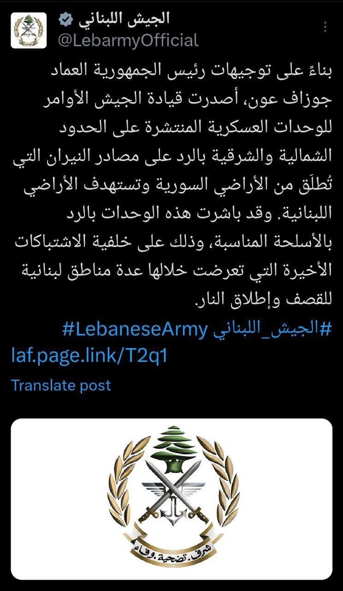 Президент Ливана Джозеф Аун приказывает армии открыть ответный огонь по Сирии⚠️☝️