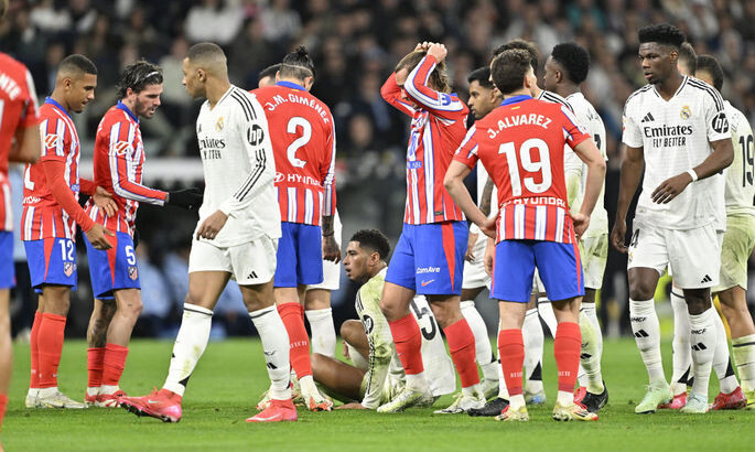 Обе команды подходили к матчу с определенными кадровыми проблемами. Особенно ощутимы они были у "Реала", ведь травмированы Милитао, Алаба, Рюдигер и Карвахаль. В распоряжении Анчелотти среди центральных защитников остался только молодой Рауль Асенсио, пару которому составил опорный полузащитник Чуамэни. На других позициях без сюрпризов. "Атлетико" имел только одну потерю на матч - из-за дисквалификации игру пропускал Ле Норман. Команды начали матч на высоких скоростях и активно включали прессинг. Первый голевой момент создали гости. Самуэл Лино пробил с предела штрафной, но мяч просвистел мимо левой стойки ворот. "Реал" ответил похожим моментом. Это Винисиус Жуниор пробил по воротам из предела штрафной, но закрутил мяч мимо правой штанги. Килиан Мбаппе попытался пройти соперника на дриблинге, однако защитники выбили мяч на угловой. В середине первого тайма Лино упал в штрафной соперника после контакта с Чуамэни. Арбитр после пересмотра ВАР назначил пенальти. К мячу подошел Альварес, п