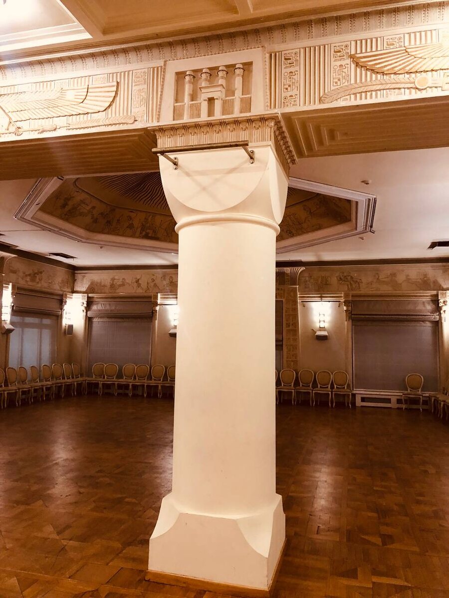 Наследник водочных магнатов П.П. Смирнов приобретает старинную усадьбу на Тверском бульваре в 1900 году. Ампирный особняк не устраивал хозяина, и он поручает Федору Шехтелю перепланировать здание. В результате в Москве появилось еще одно прекрасное творение великого архитектора эпохи модерна. Шехтель переделывает фасад здания, добавляет балкончик, длинные полукруглые окна, плавные, застекленные эркеры. Но настоящим фурором становятся интерьеры особняка. Восемь парадных помещений, собранных в анфиладу, сменяют один архитектурный стиль другим: «Романский зал», «Классический зал», «Египетский зал», «Греческий зал», «Рокайльная комната», «Аванзал», «Будуар», «Кабинет». Только Египетский зал отстает от главной анфилады и выходит окнами во внутренний двор. Здание было оборудовано паровым отоплением, вентиляцией и полностью электрифицировано. Владельцы и значимые персоны Смирнов поселяется здесь с женой и детьми, и семья (сам Смирнов умер в 1911 году) живет в доме до самой революции 191