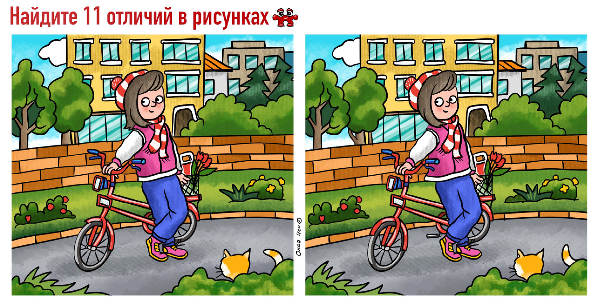 11 отличий на картинках про велопрогулку. Разминка для мозга, польза для ума. Тест памяти и внимания №261