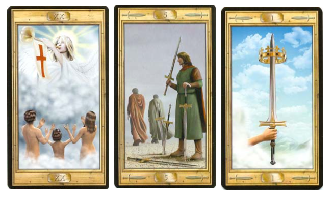 Здравствуйте! Сложный вопрос задала одна из подписчиц в своем комментарии к моему посту-размышлению о значениях Старшего аркана Суд. Вот что она написала: «Я так и не смогла уловить суть его в сочетании с 5 мечей и Тузом мечей. Вопрос был на чувства бывшего мужа к жене (в разводе больше 30 лет). Выпали: СУД -5 МЕЧЕЙ -ТУЗ МЕЧЕЙ. То ли это возрождение ненависти (но люди не общаются уже больше 20 лет), то ли, наоборот, - кармическая проработка по чувствам закрыта, ведь туз мечей отсекает все. У мужчины к этой женщине есть только финансовый долг по алиментам, на который она уже давно "забила"...». Я думаю, что Суд в этом случае следует толковать с теневой стороны. Это похоже на «топор войны», который бывшие супруги когда-то давно может быть пытались зарыть в землю и напрочь забыть о нем. Какое-то время это тяжелое наследие прошлого вполне удавалось держать глубоко похороненным в глубинах памяти. Но вот что-то произошло, и весь негатив снова оказался вытянутым на поверхность. В этом трипле
