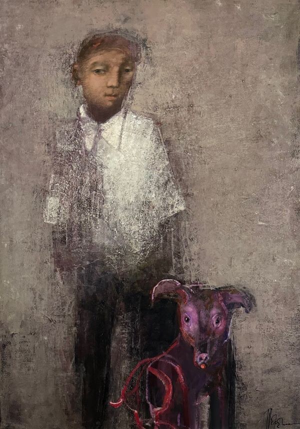 "Мальчик с собакой, художник Теренин Алексей