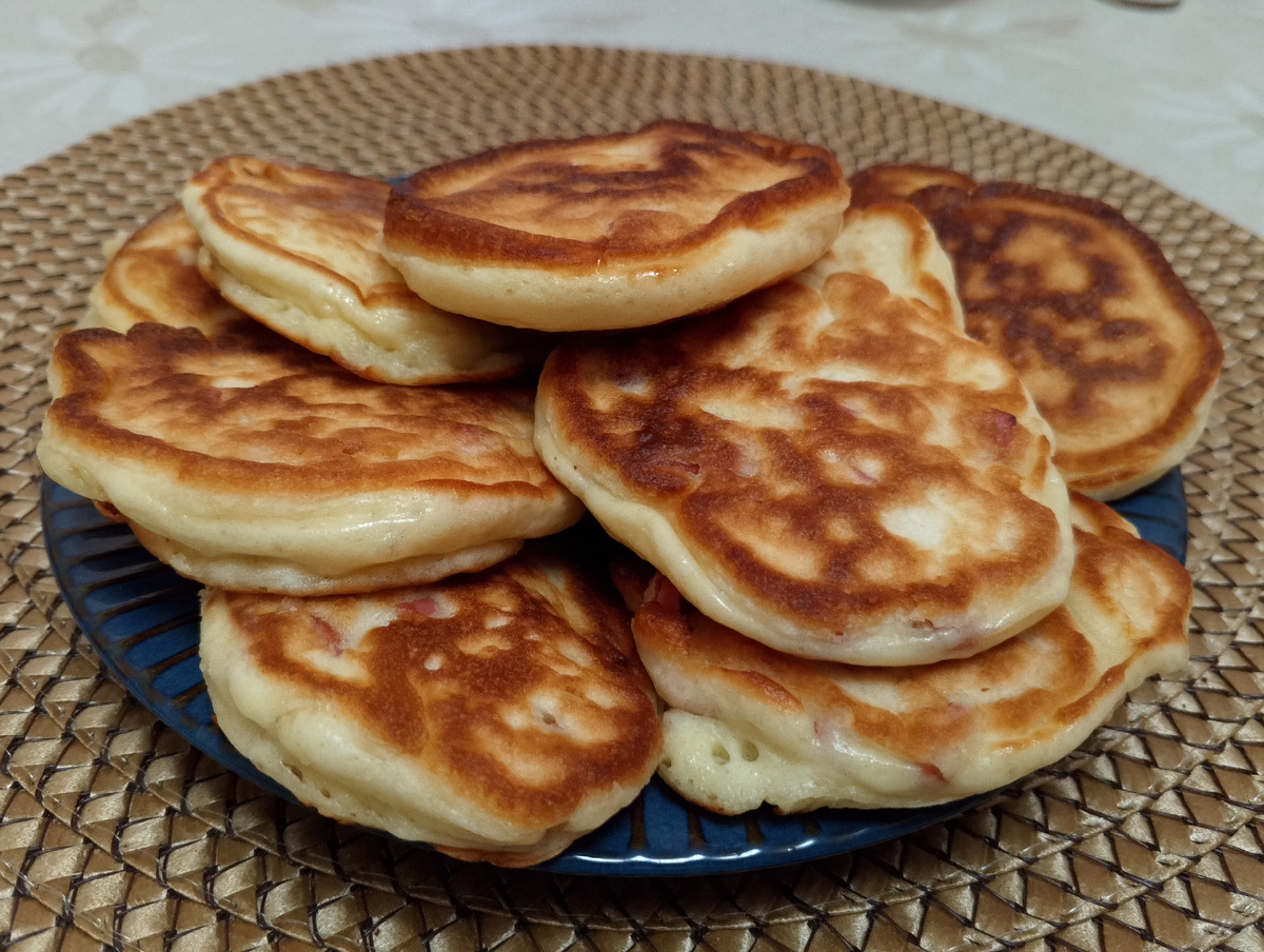 Оладьи очень вкусные и нежные на кефире.Очень быстро получаются, особенно удобно утром на завтрак, когда спешишь на работу. Продукты все доступные, всегда есть в холодильнике. Рецепт: Кефир - 1 стакан Яйца - 2 шт Мука пшеничная - 1,5 стакана Сахар - 2 ч. ложки Соль - 0,5 ч. ложки Разрыхлитель - 1 ч. ложка Масло растительное - для жарки Яйца взбить, добавить к яйцам сахар и соль. Хорошо взбить яйца с сахаром венчиком. Затем добавить кефир. Кефир предварительно достать из холодильника, чтоб он был тёплым. Хорошо перемешать. Всыпать в смесь просеянную муку с разрыхлителем небольшими порциями, постоянно перемешивая, чтобы не было комочков. Хорошо всё перемешать . Тесто на оладьи оставить на 30 минут. Готовим сковороду. Разогреваем сковороду, налить растительное масло. В хорошо разогретое масло столовой ложкой выкладываем тесто на сковородку. Жарить оладьи на среднем огне с одной стороны до румяности, затем оладьи перевернуть и жарить с другой стороны. Готовые оладьи можно выложить на бу