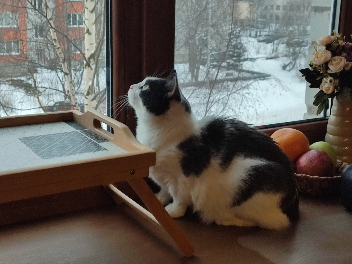 Утро, как утро. По прогнозу -5 -7, пасмурно. Мартыша в три часа ночи гоняла в футбол, пыталась будить, но сдалась и ушла на подоконник спать. В шесть утра попытку повторила, добилась своего, получила завтрак и потом, как обычно, по расписанию пошла контролировать голубей на крыше. Наблюдать за этой охотницей всегда интересно и каждый раз смешно. Она всерьёз думает, что сможет их поймать? Кстати, дрозд Иван Иваныч больше не прилетает. Да и какой в этом теперь смысл? На рябине не осталось ни одной ягоды. Я бы даже рябину в этом дереве не опознала теперь. Свиристелей тоже два дня не видно. Вообще нигде. Они летали по району примерно неделю, объели все рябины, оставив под ними на белом снегу ярко-красные пятна от сока и кажется улетели дальше. Ни в одном ближайшем дворе не осталось ягод. Как будто саранча прошла. Теперь и дроздов не видно. Сороки да синицы по веткам скачут. И стаи голубей волнуют Сардельковну, прилетая то на окно, то на крышу. Вчера закончила самую сложную и интересн